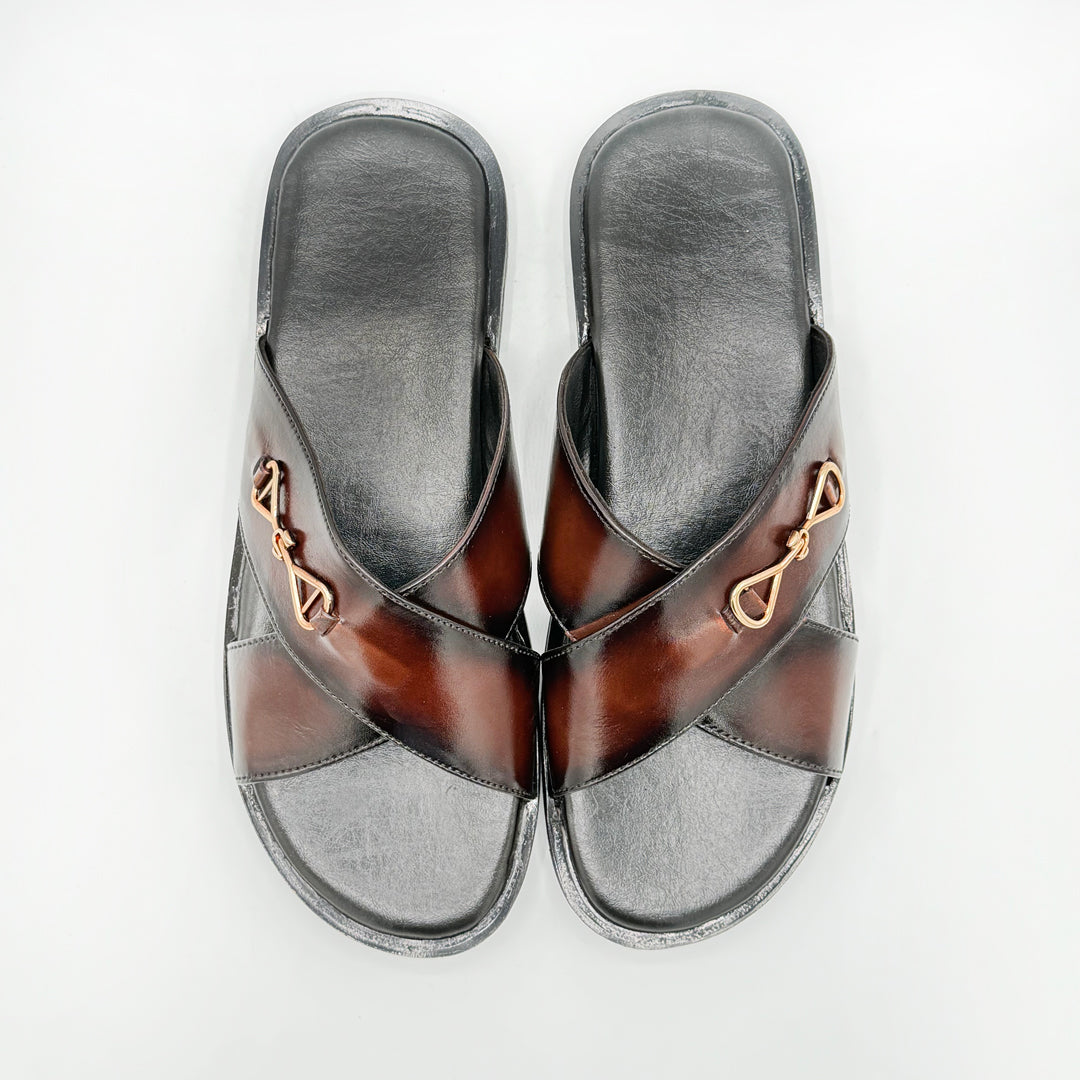 Features a comfortable open-toe design with crossed straps.
