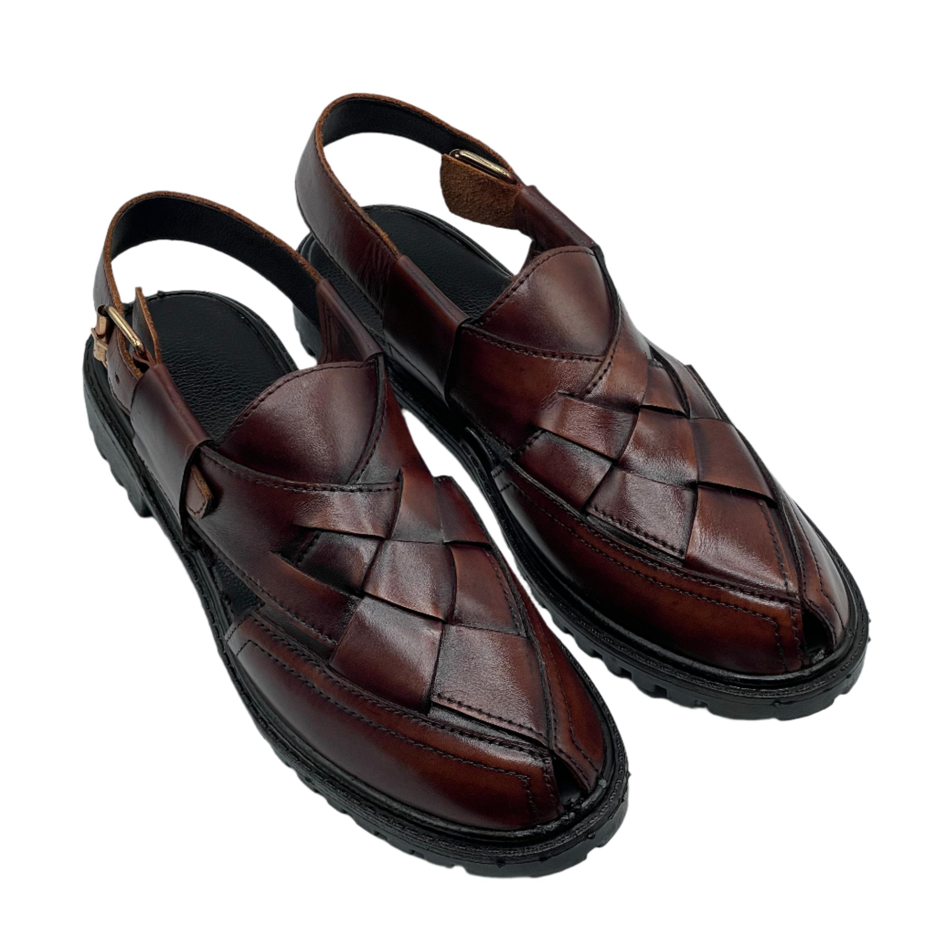 Discover the timeless elegance of our brown woven Peshawari chappals (Kheri), handcrafted with premium leather and available. These stylish sandals feature a distinctive woven pattern, blending traditional craftsmanship with contemporary design. The adjustable back strap ensures a comfortable and secure fit, perfect for adding a touch of cultural sophistication to your everyday or special occasion wear. Experience the quality and style of authentic Peshawari Kheri.