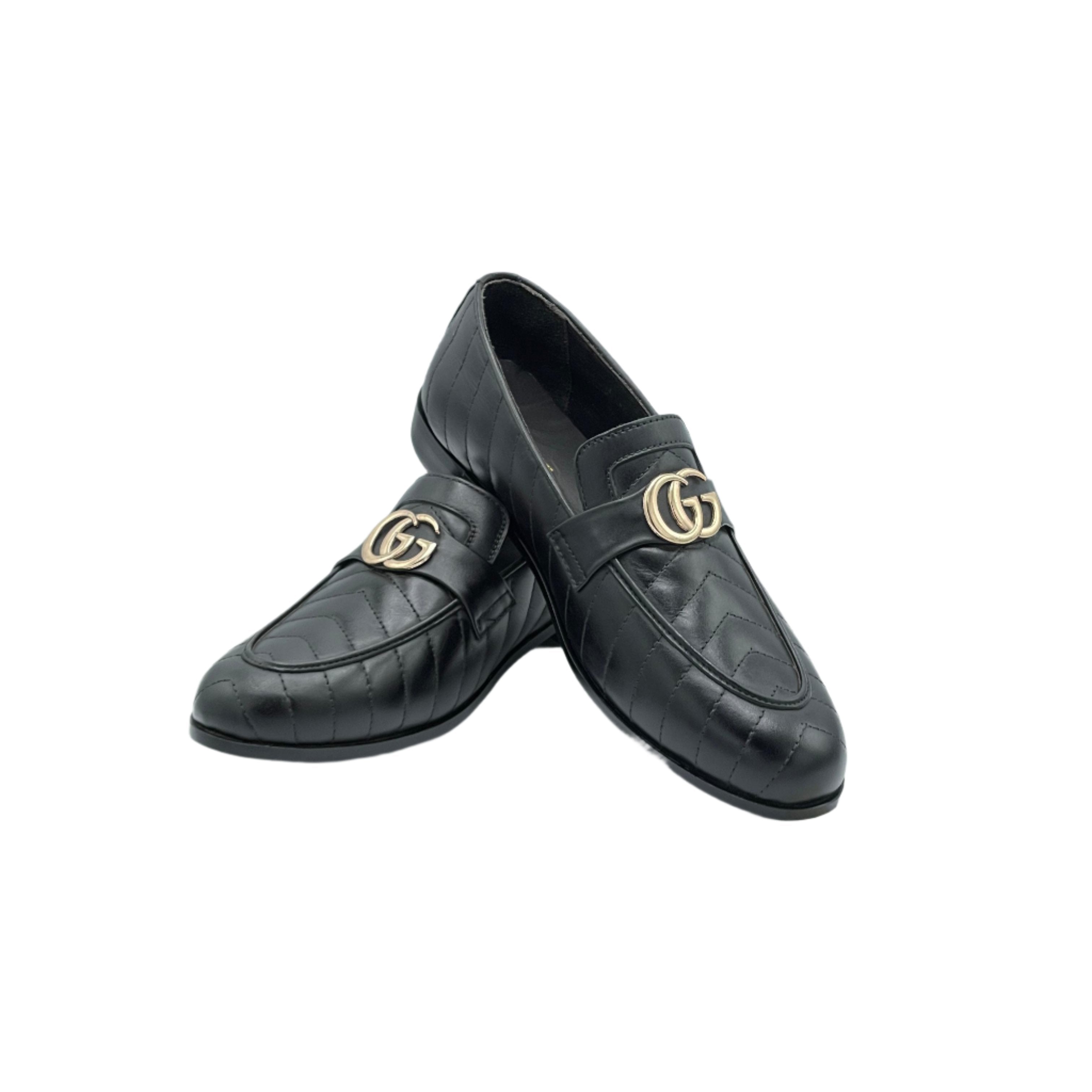 Elevate your style with these iconic Gucci black GG Cooperate loafers, now available. Featuring the recognizable GG monogram detail in gold-tone hardware against quilted black leather, these designer slip-on shoes exude luxury and high fashion. Crafted for both visual appeal and comfort, they offer a smooth interior and a cushioned insole for all-day wearability. Make a statement with these authentic Gucci loafers, perfect for adding a touch of designer flair to any occasion in Lahore. Discover exclusive luxury footwear today.
