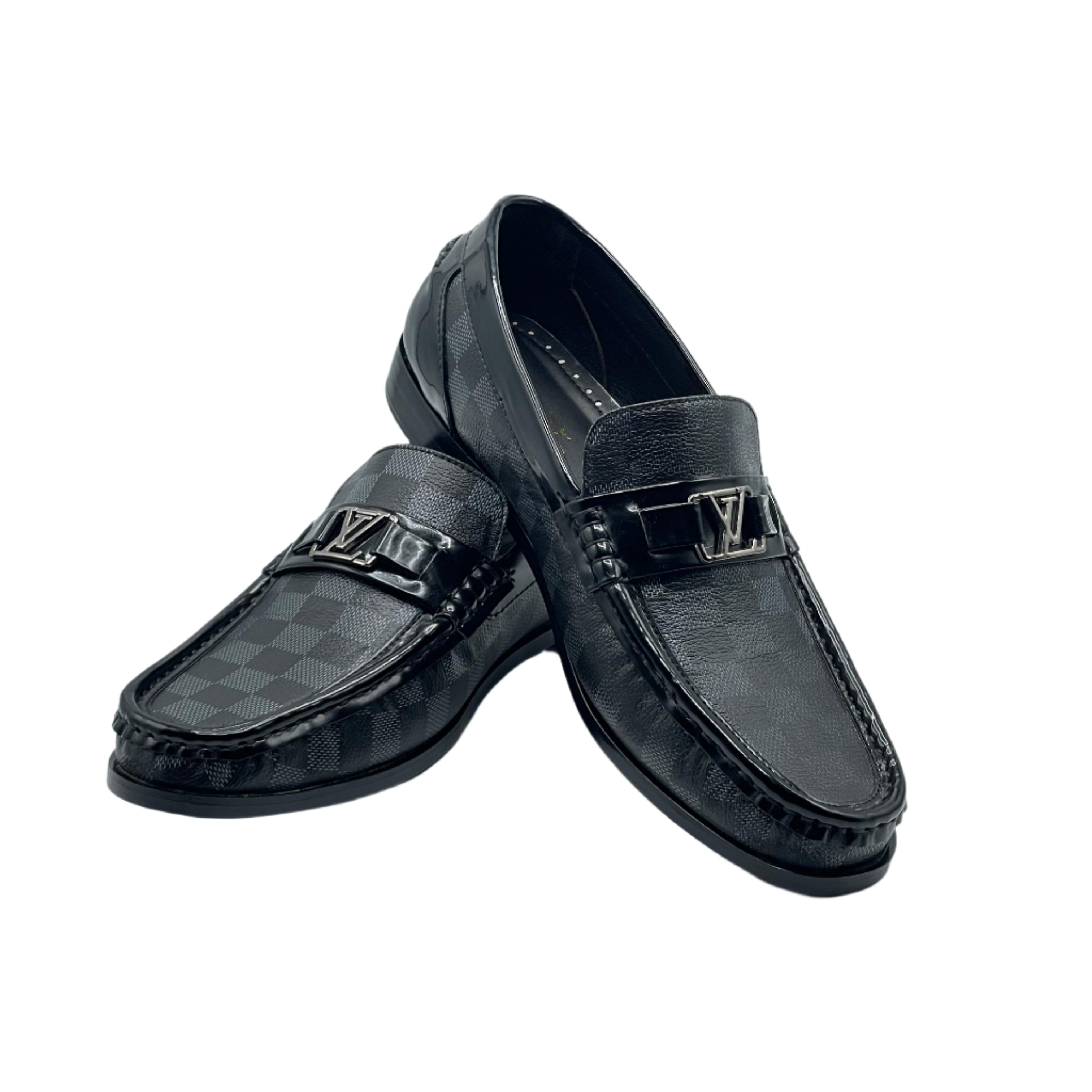 Elevate your footwear game with our striking black patterned loafers. These designer dress shoes boast a subtly textured design and a sleek metallic buckle, radiating modern sophistication. Crafted for both style and all-day wear, they feature a smooth interior and cushioned footbed. Make a confident statement at formal gatherings, the office, or when adding a touch of panache to your smart-casual looks with these premium men's shoes