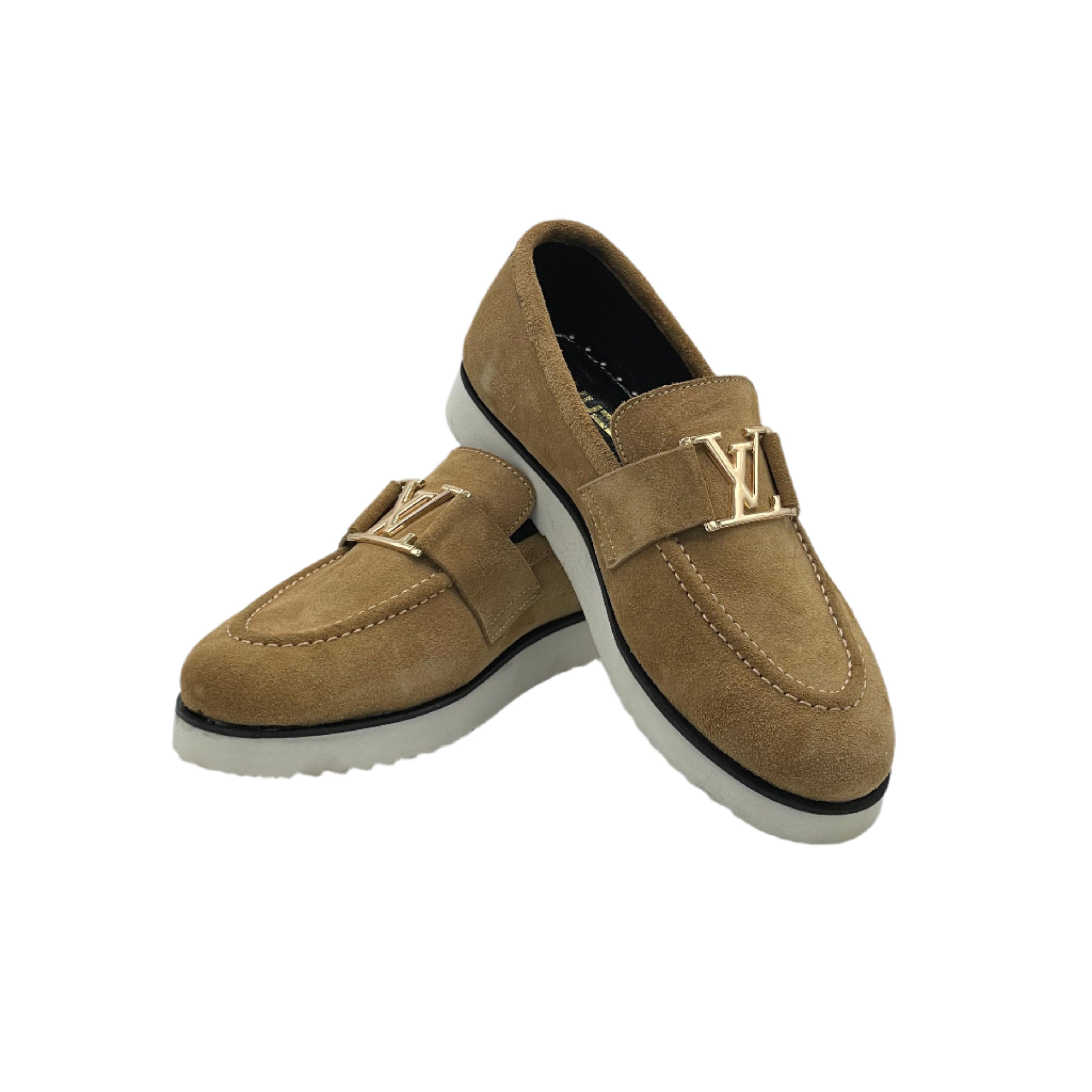 Introduce a touch of laid-back luxury to your wardrobe with our tan suede buckle loafers. Crafted from soft, premium suede and accented with a stylish metallic buckle, these shoes offer a unique blend of comfort and contemporary design. The cushioned insole ensures all-day wearability, while the versatile tan hue pairs effortlessly with a range of outfits. Perfect for adding a refined yet relaxed touch to your smart-casual ensembles. Explore our collection of fashionable men's loafers and step out in style.